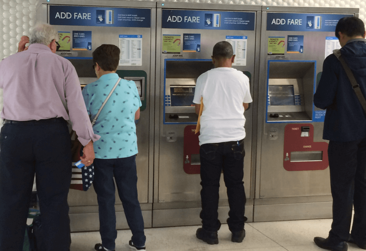 The current process to purchase fares is convoluted and confusing for many users. People who travel on BART have to buy tickets from a kiosk with a less than ideal interface, often waiting in line or use a prepaid Clipper Card where they add funds in block amounts. Either way, there's an additional item to fumble with and keep track of as they navigate crowds to make the train.
