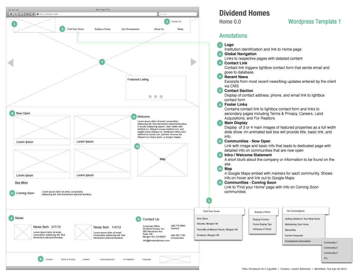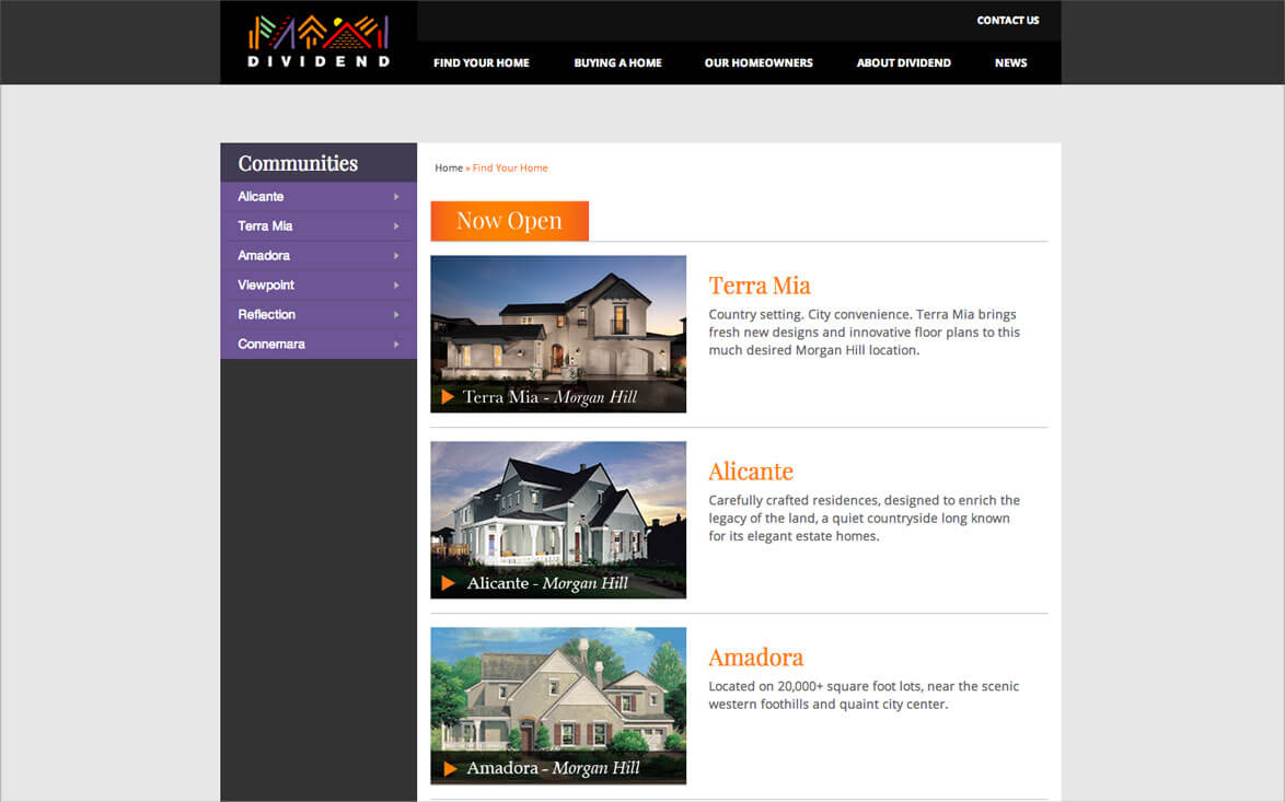 To coincide with the opening of a new set of master-planned communities, the client needed an extensive redesign to advertise the properties being offered, give a walkthrough of the details and floor plans of the different home models, and act as a source of information for existing homeowners in linked communities. The site was built to exist on a WordPress CMS.