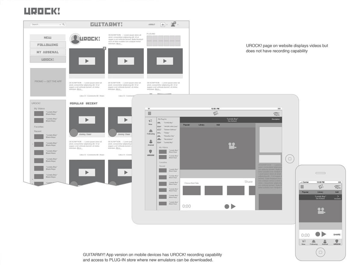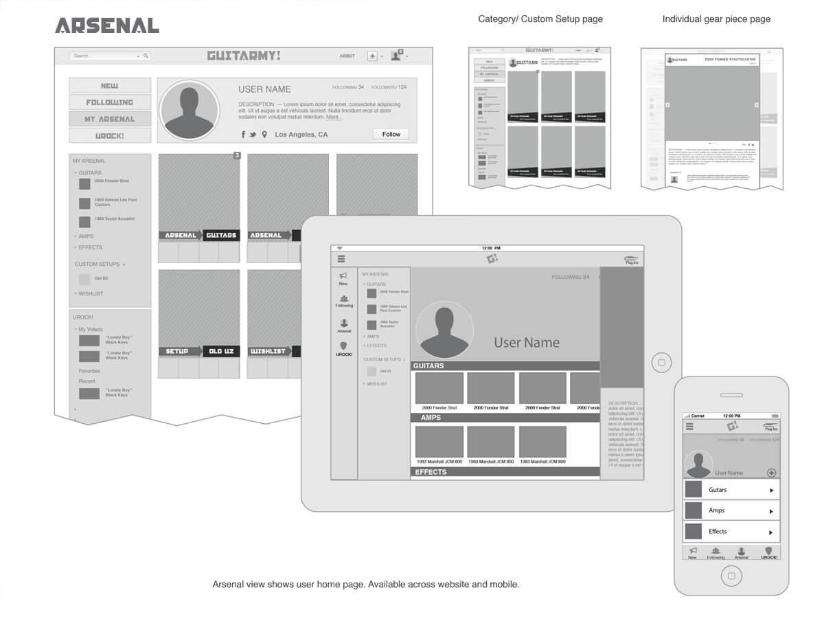 A social network for guitar players. Being a guitar player is like being a part of a club that shares a love of playing music and an appreciation for those who have excelled with the instrument, but it's often been disconnected. GUITARMY! would serve as an avenue to research and catalog a user's gear, form new relationships with like-minded players, show off skills, and just stay in the know in a world of constantly expanding options.